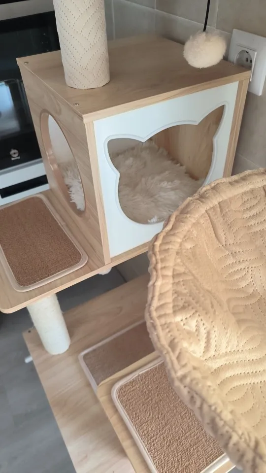 Grazie alla sua struttura in legno massiccio e ai box integrati, offre spazi accoglienti per il relax, piattaforme per arrampicarsi e pali tiragraffi che salvano i tuoi mobili.