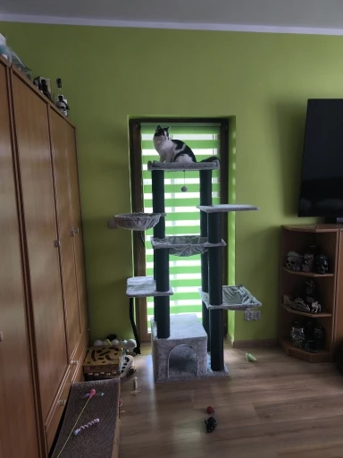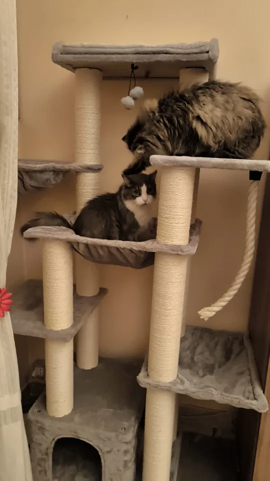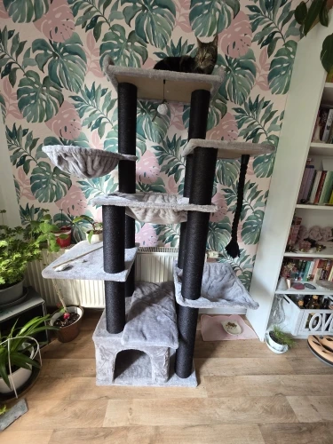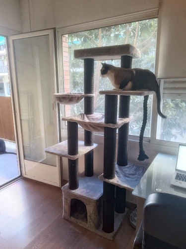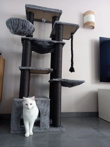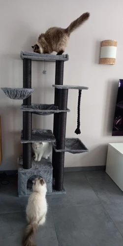I miei gatti lo adorano. È abituale, facile da assemblare. Molto più economico rispetto ad altri siti che lo visualizzano a 150€ e con uno sconto!. Sono davvero felice. 🐈 🐈 ‍ ⬛ 🐾 💖 😘