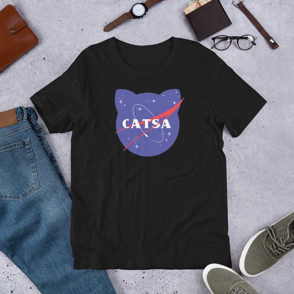 Introducing the NASA Cat Shirt, a dream come true for all cat enthusiasts! This shirt offers everything you've ever wanted and more. Crafted with the utmost care and attention to detail, it provides a soft and lightweight feel, ensuring optimal comfort throughout the day. The shirt is designed with the perfect amount of stretch, allowing for a flattering fit on men and women alike.