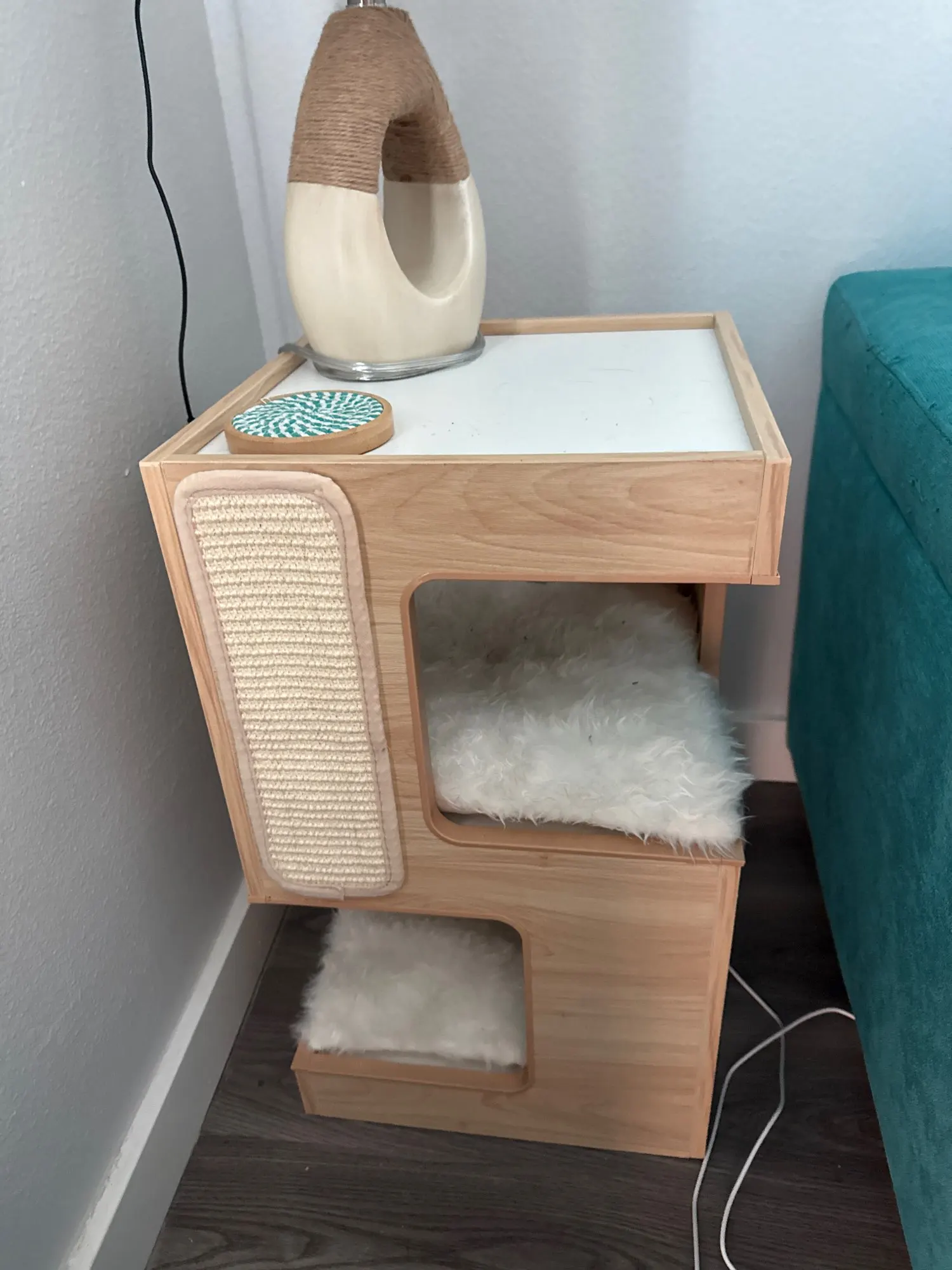Con TinyFurniture™, il tuo felino avrà un posto esclusivo dove giocare, arrampicarsi, riposare e graffiare, riducendo lo stress e proteggendo i tuoi mobili.